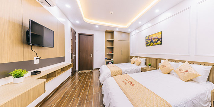 Tiếp đến trong danh sách khách sạn Quảng Trường biển Sầm Sơn là khách sạn Lê Linh được toạ lạc tại căn E10-11 thuộc khu Quảng Trường Biển. Với quy mô 10 phòng nghỉ tiện nghi, khách sạn bao gồm 6 phòng đôi phù hợp cho các cặp đôi hoặc gia đình nhỏ, và 4 phòng đơn được trang bị giường 1m8*2m rộng rãi, thoáng đãng, tiện nghi. Tất cả các phòng đều được trang bị đầy đủ thiết bị hiện đại như: Tivi, tủ lạnh, điều hoà, bình nóng lạnh,....Phòng tắm trang bị đầy đủ đồ dùng cá nhân như: Bàn chải đáng răng, sữa tắm, dầu gội, khăn tắm,....Khách sạn có bể bơi trong nhà phục vụ nhu cầu vui chơi của du khách.