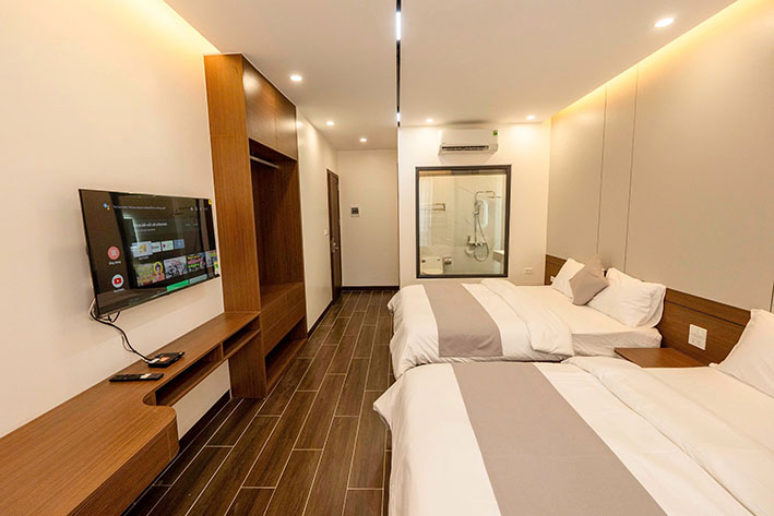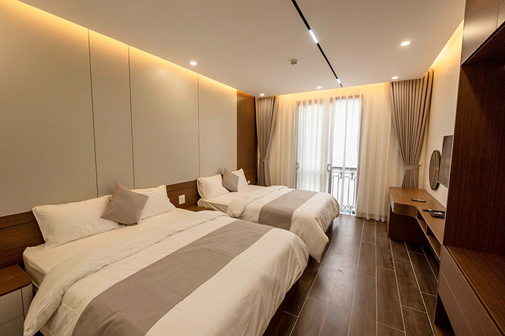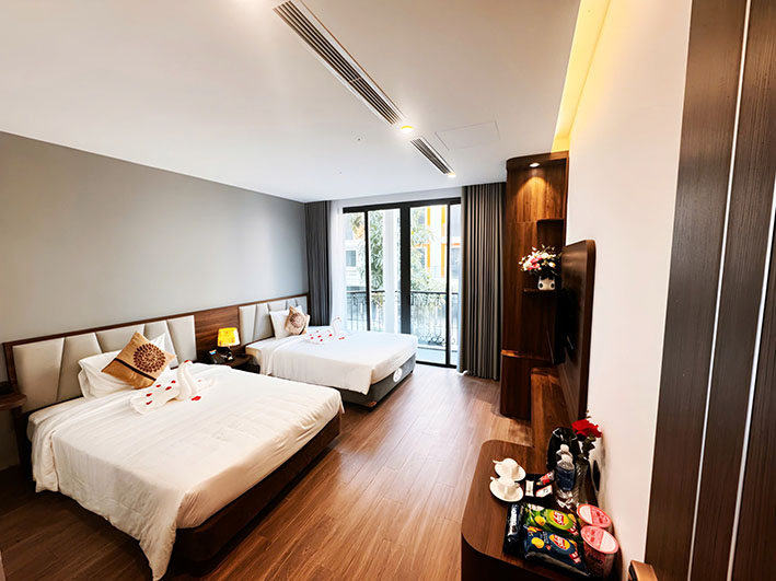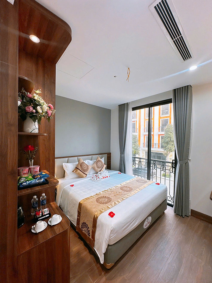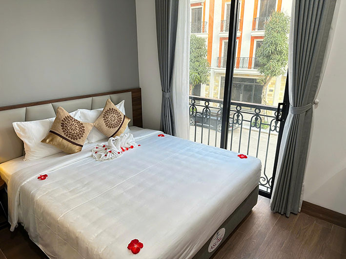 Khách sạn Hà Mai Imperial tọa lạc tại vị trí đắc địa ngay quảng trường biển Sầm Sơn, là điểm dừng chân cho du khách muốn tận hưởng không gian nghỉ dưỡng sang trọng và tiện nghi. Khách sạn gồm tổng cộng 11 phòng, trong đó có 8 phòng đơn được trang bị giường lớn (1m8 – 2m), mang lại sự thoải mái tối đa cho khách lưu trú. Đặc biệt,có 4 phòng là phòng đơn Deluxe có bồn tắm hiện đại và ban công hướng ra quảng trường, lý tưởng để thư giãn và ngắm cảnh.