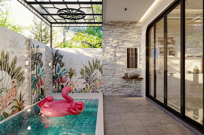 - Có 4 phòng: 2 giường đôi 1m6*2m có bồn tắm view đẹp.