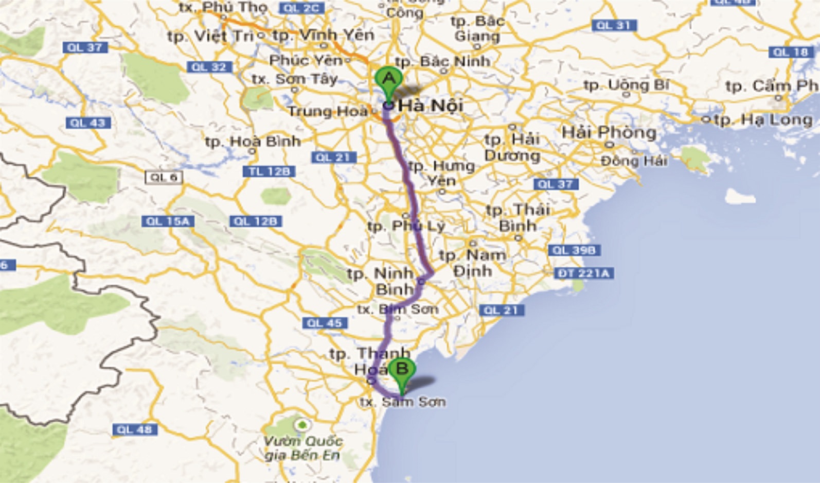 Bản đồ từ Hà Nội Về Sầm Sơn