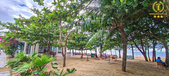 + Khu vực bar ngoài trời : Là nơi đặt những bộ bàn ghế sang trọng, hiện đại. Không gian được phủ rất nhiều cây xanh rất thoáng đãng và mát mẻ. Thích hợp cho các đoàn khách dùng bữa, thưởng thức những đồ uống ngon. Vừa có thể ngắm nhìn đường phố và cả biển Sầm Sơn.