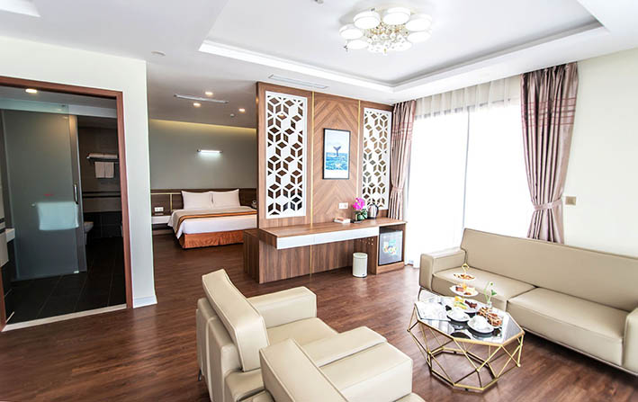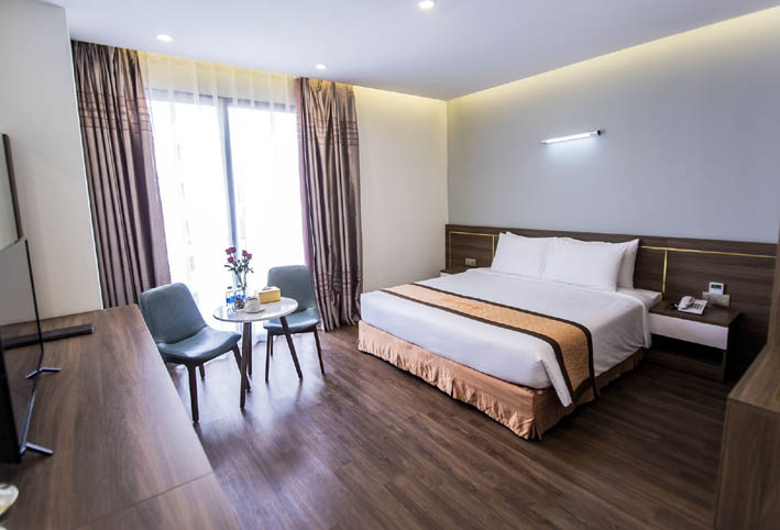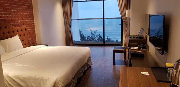 - Nằm đối diện mặt biển, tọa lạc trên trục đường Hồ Xuân Hương. Khách sạn có 15 tầng gồm 139 phòng nghỉ khép kín và được chia thành 5 hạng phòng khác nhau. Phòng ốc rộng rãi, thoáng mát có ban công nhìn ra biển cực chill.