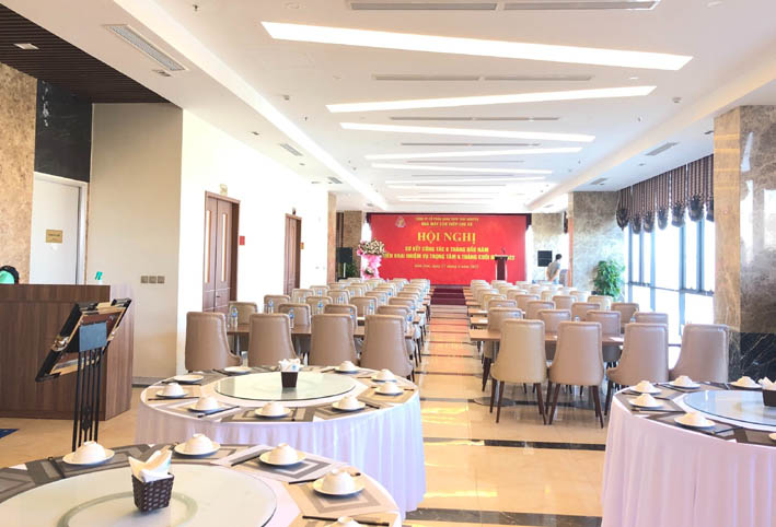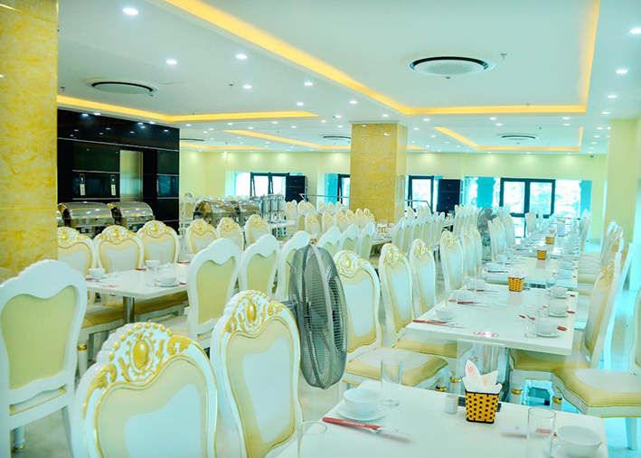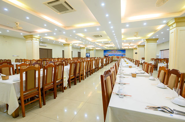 - Đến với nhà hàng của khách sạn, quý khách sẽ được trãi nghiệm phong cách chế biến thức ăn và phục vụ vô cùng chuyên nghiệp. Ngoài ra, còn có phòng hội nghị tổ chức sự kiện với sức chứa 350 khách.