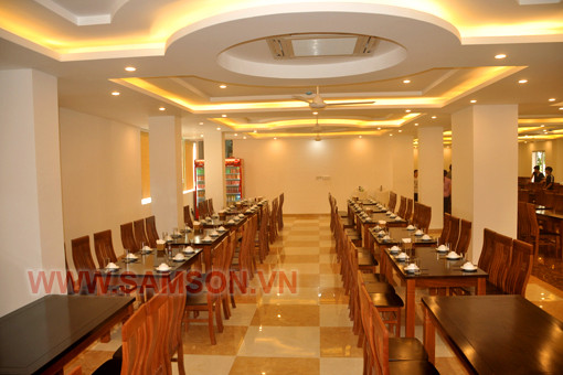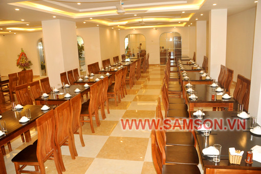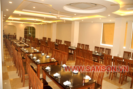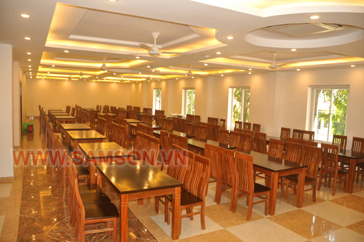 Phòng ăn lạnh với sức chứa 300 khách, bàn ghế gỗ sang trọng
