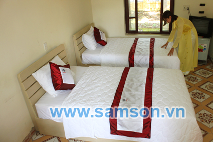 Phòng 02 giường đôi 1,4m, đệm cứng, chăn ga gối mới: