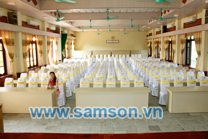 HỘI TRƯỜNG – phòng họp lớn có sức chứa 300 chỗ ngồi, trang thiết bị âm thanh, ánh sáng, điều hòa, quạt trần hiện đại đáp ứng nhu cầu Tổ chức hội nghị hội thảo kết hợp du lịch cho các đoàn khách lớn