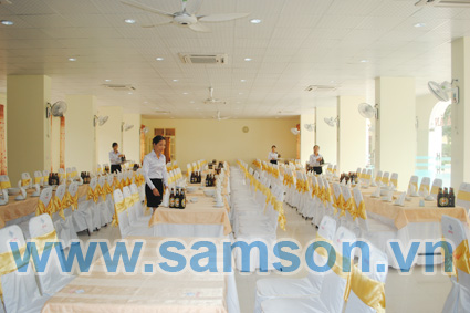 PHÒNG ĂN LỚN: sức chứa đến 300 chỗ ngồi, rộng rãi, thoáng mát tiện nghi hiện đại, luôn được phủ áo làm nên sự sang trọng khác biệt.