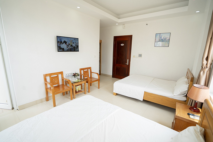 Trang thiết bị nội thất trong phòng Khách sạn Cát Đại Lợi mặt biển Sầm Sơn đều được trang bị đồng bộ, hiện đại, và được nâng cấp qua từng năm nhằm mang lại cảm giác thư giãn và thoải mái nhất cho khách khi lưu trú tại đây.