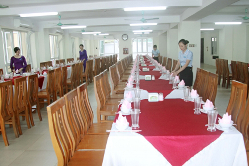 Nhà ăn với sức chứa 200 khách rộng rãi, sạch sẽ, có điều hòa. Các món ăn được chế biến bởi những đầu bếp chuyên nghiệp, có nhiều năm kinh nghiệm, nhân viên thân thiện, nhiệt tình