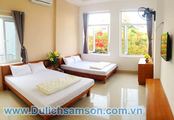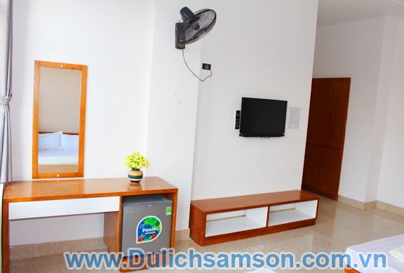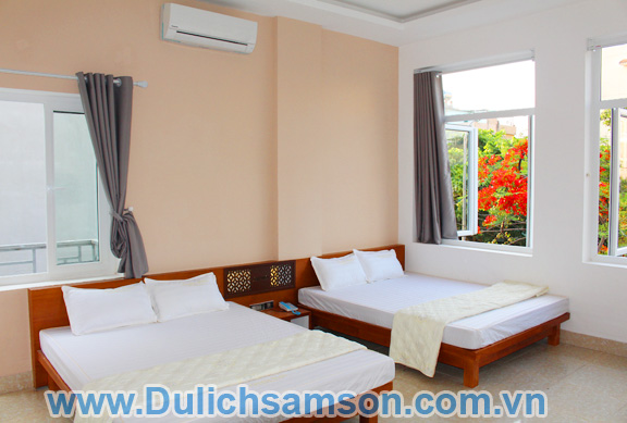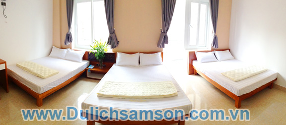 Tiện nghi gồm có: 3 giường rộng 1,5m, bồn dửa mặt, vòi hoa sen cao cấp, tủ đựng đồ, bàn trang điểm, bàn trà, tivi siêu mỏng, nóng lạnh, điều hoà 2 chiều, ấm siêu tốc....