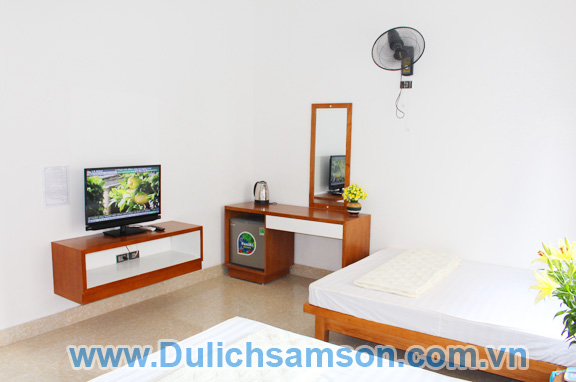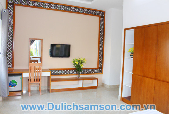 Tiện nghi gồm có: 2 giường rộng 1,5m, bồn dửa mặt, vòi hoa sen cao cấp, tủ đựng đồ, bàn trang điểm, bàn trà, tivi siêu mỏng, nóng lạnh, điều hoà 2 chiều, ấm siêu tốc....
