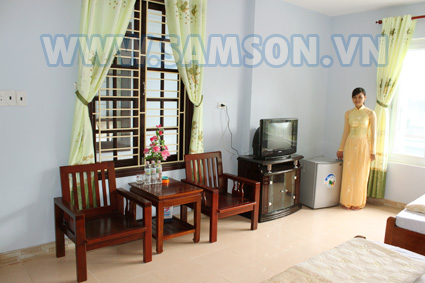 Vì vậy trang thiết bị trong phòng được chúng tôi đầu tư đồng bộ từ: tivi, tủ lạnh, điều hòa, bình nóng lạnh, ga, gối đệm chất lượng cao. Chắc chắn sẽ tạo cho du khách cảm giác thoải mái cho kỳ nghỉ của mình tại Khách sạn Đại Dương Xanh Sầm Sơn Thanh Hóa.