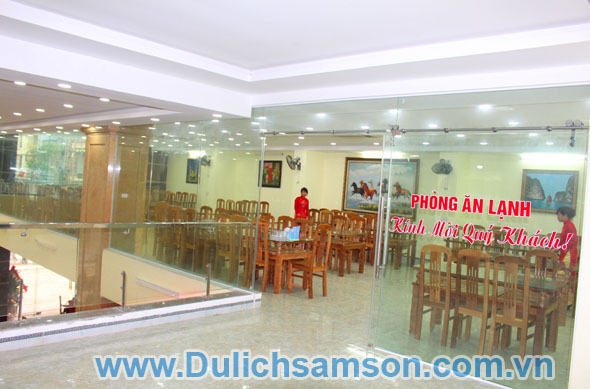 Ngoài ra, Khách sạn Hoa Phượng Đỏ Sầm Sơn có 2 nhà ăn lạnh sang trọng có thể phục vụ lên tới 400 khách cùng một lúc. Nhà ăn được trang bị đồng bộ bàn gỗ mặt kính và ghế gỗ đều là gỗ tự nhiên giúp không gian nhà ăn thêm sang trọn, sạch sẽ, vệ sinh.
