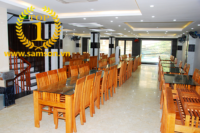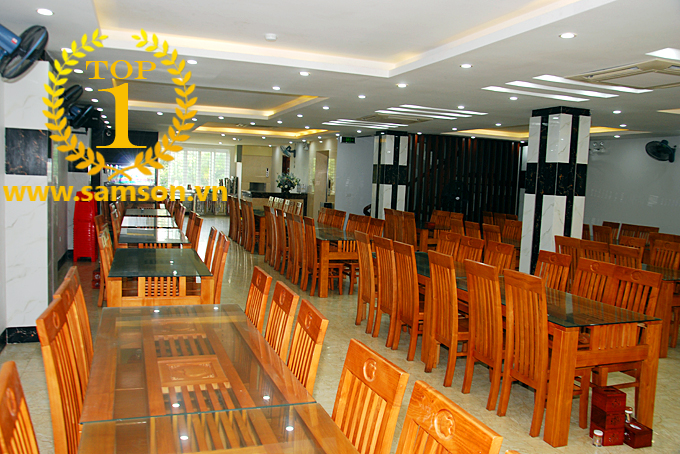 Đặc biệt, Khách sạn Hoàng Kim Sầm Sơn là khách sạn duy nhất tại Sầm Sơn sử dụng bàn ăn mặt kính dài 1,6m chứ không phải dài 1,4m như thông dụng. Điều này giúp Quý khách có thể ngồi thoải mái khi ăn uống thậm chí là kê thêm ghế ngồi cho bé ăn cùng. Toàn bộ ghế ngồi được làm từ gỗ tự nhiên vững chắc, sang trọng và sạch sẽ.