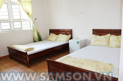 Phòng ngủ đẹp, rộng, thoáng với 2 giường đôi 1,4m đệm cứng