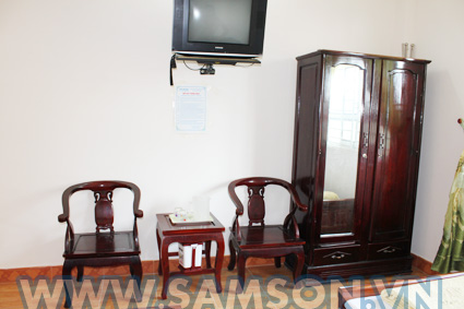 Trang thiết bị: tivi, tủ lạnh, nóng lạnh, điều hòa...cùng nội thất gỗ: bàn ghế uống nước, tủ quần áo...đều còn mới
