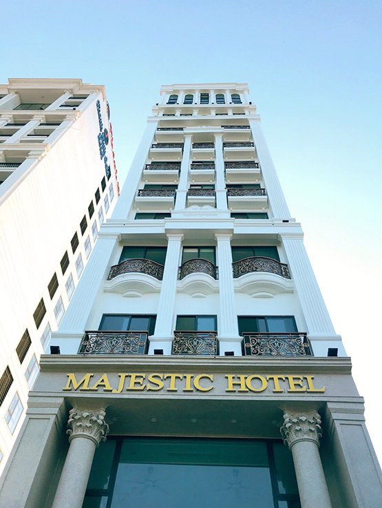 Khách sạn Majestic tọa lạc ngay trên con đường Hồ Xuân Hương, đối diện mặt biển. Khách sạn gồm 12 tầng với 60 phòng nghỉ khép kín.