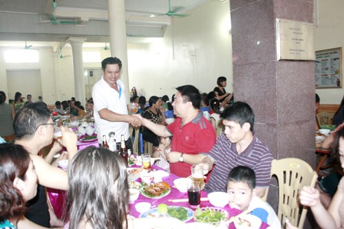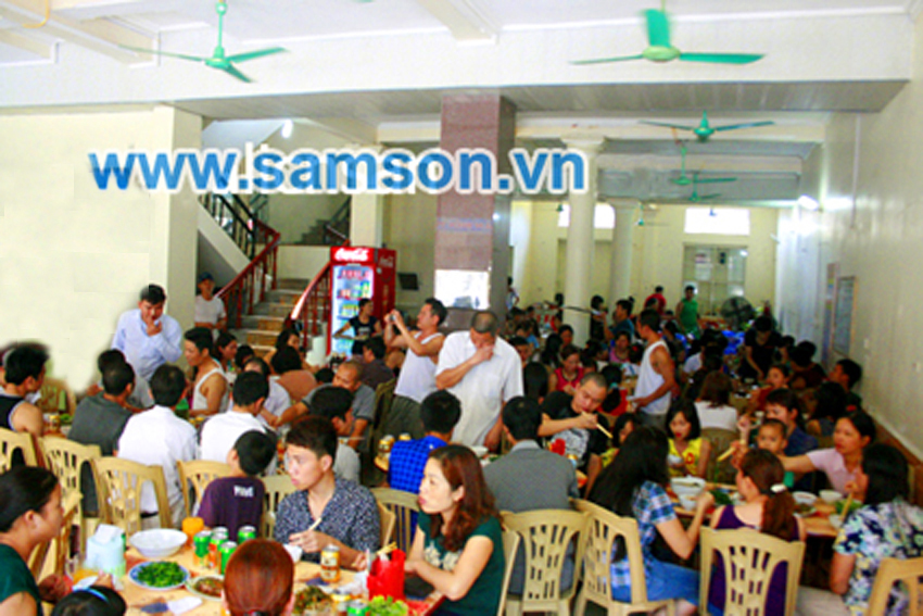 Tầng trệt là nhà ăn rộng rãi thoáng mát có thể phục vụ 200 người ăn cùng một lúc, trong phòng ăn có giàn âm thanh chất lượng cao dành cho các đoàn có nhu cầu giao lưu ( miễn phí)