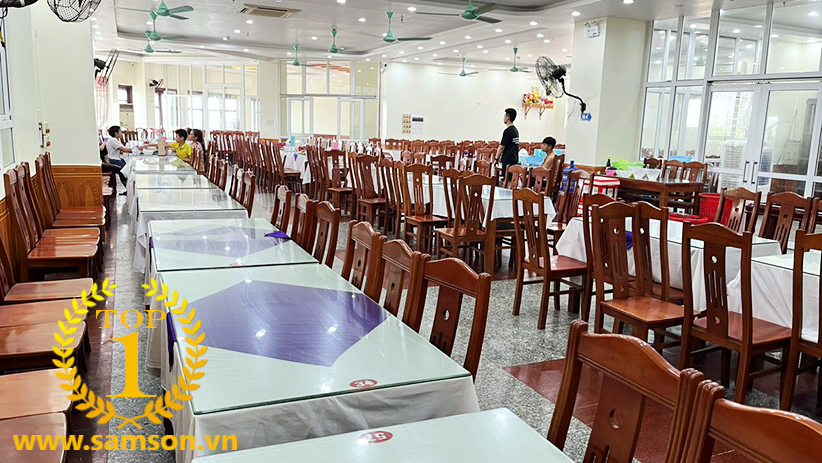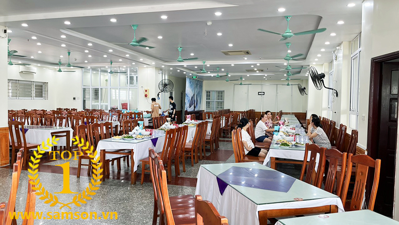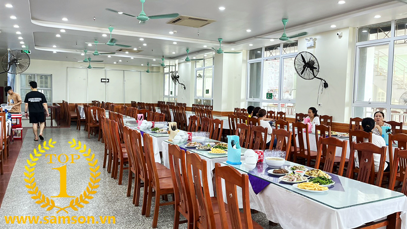 Nhà ăn lạnh rộng, thoáng với đội ngũ nhân viên phục vụ chuyên nghiệp