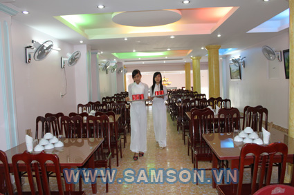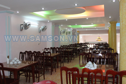 Khách sạn Sầm Sơn Ngân Hoa có phòng ăn lạnh sang trọng trên tầng 2 hướng biển nên rất thoáng mát