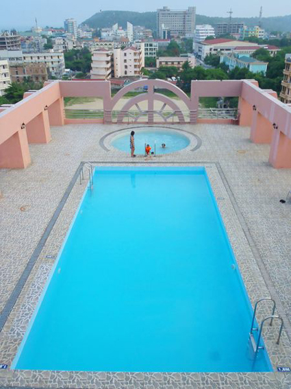 Ngoài ra, tại tầng 09 của khách sạn Quy Sơn là không gian bể bơi rộng lớn. Rất thuận tiện để quý du khách có thể vui chơi và thư giãn dưới nước.
