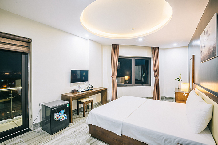 Khách sạn được xây dựng mới với thiết kế hiện đại, gồm 6 tầng và 70 phòng nghỉ đạt tiêu chuẩn 3 sao. Các phòng đều được bố trí ban công thoáng mát, hướng biển hoặc hướng thành phố, mang đến cảm giác thư giãn và thoải mái cho du khách.