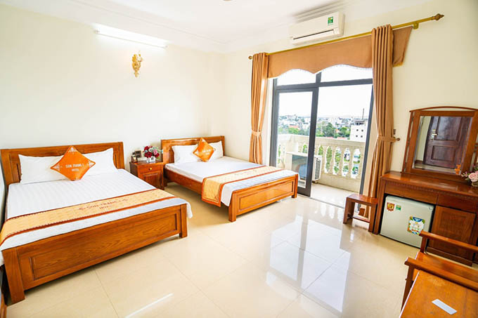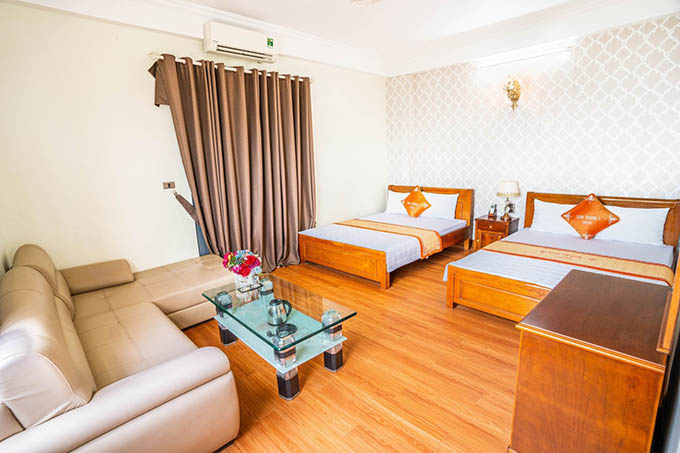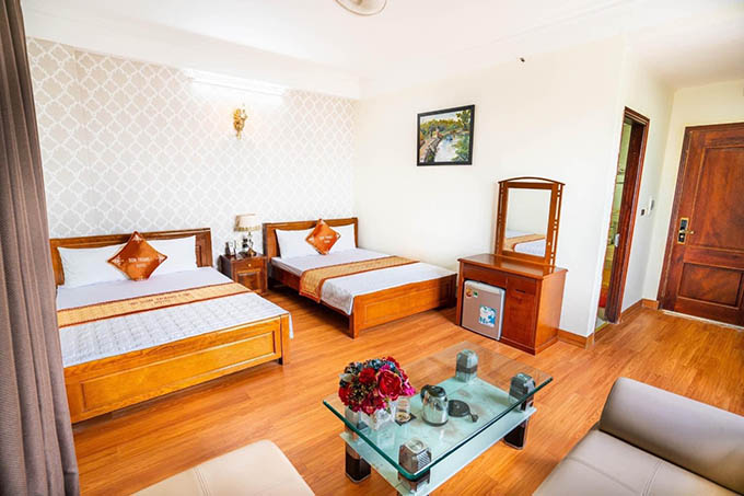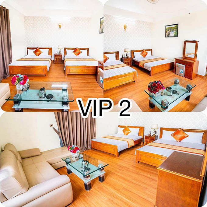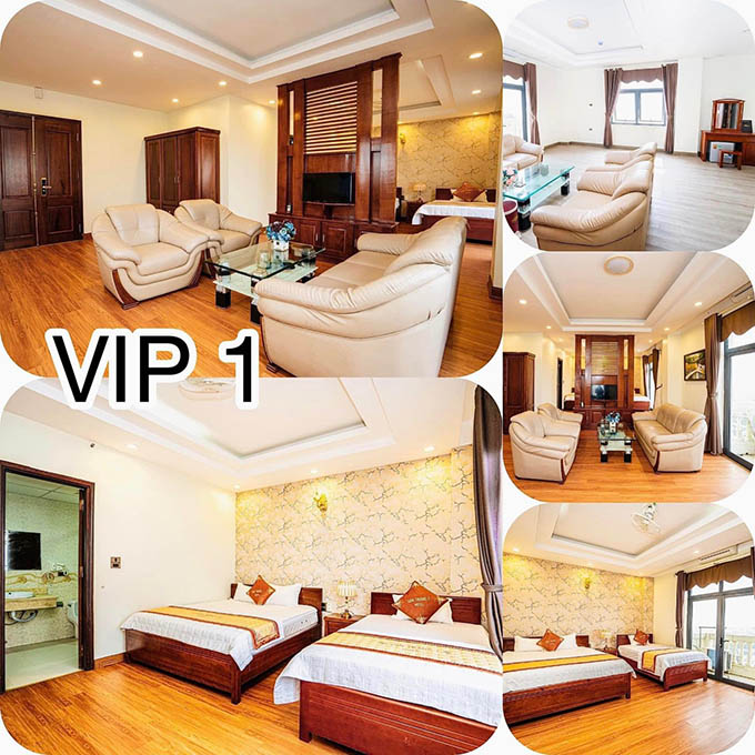 - Khách Sạn có hạng phòng Vip có diện tích từ 35-45m2, được bố trí 2 giường đôi. Ngoài ra còn có bộ ghế sofa để tiếp khách, và có view hướng ra biển