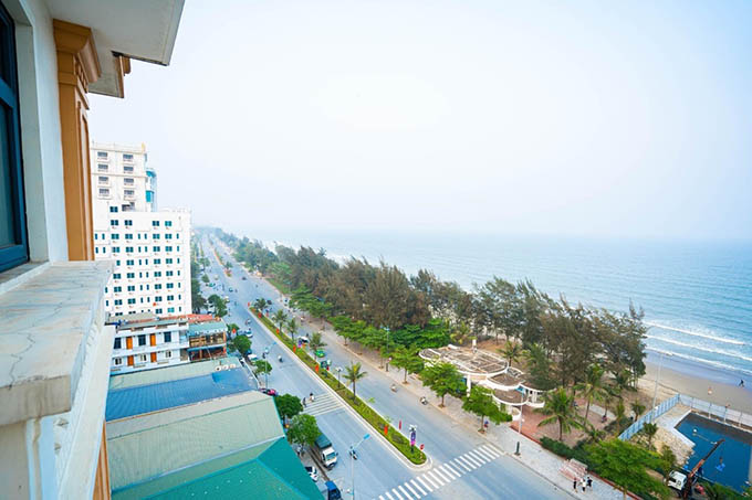 - Khách sạn tọa lạc tại bãi C , một vị trí đắc địa trên đường Hồ Xuân Hương chạy dọc sát bãi biển Sầm Sơn xinh đẹp.