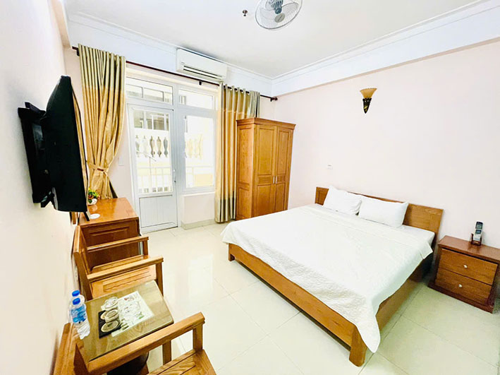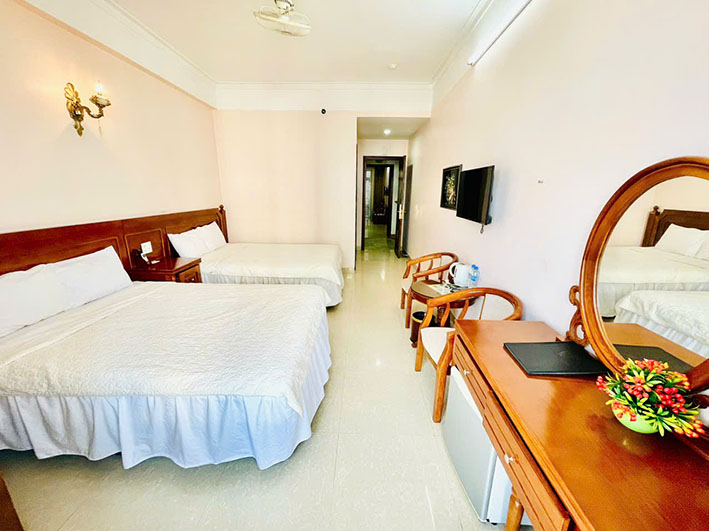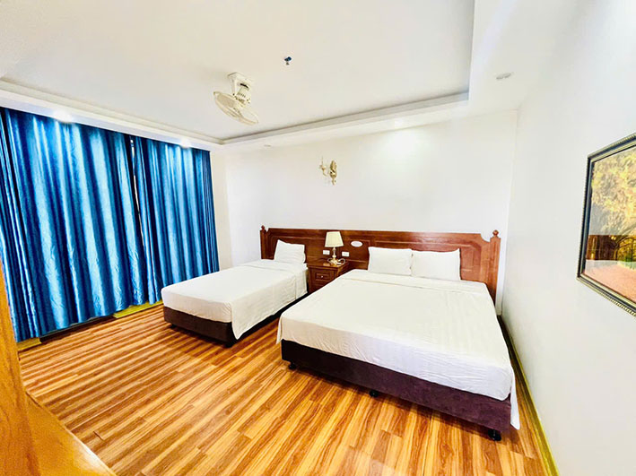 Không gian phòng ngủ khách sạn được trang bị đầy đủ tiện nghi hiện đại. Vật dụng trong phòng nghỉ được bày trí và sắp xếp hợp lý đẹp mắt. Tạo cảm giác thoải mái nhất khi quý du khách nghỉ ngơi tại đây.