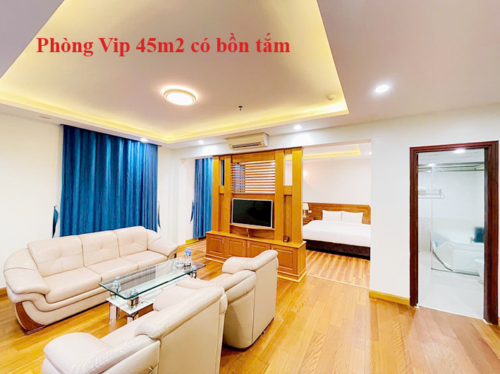 + Hạng phòng Vip: Được trang bị 01 giường, 1 giường m8x2m + 1 giường m4x2m phòng có bộ ghế sofa, bồn tắm nằm hướng trực diện biển.