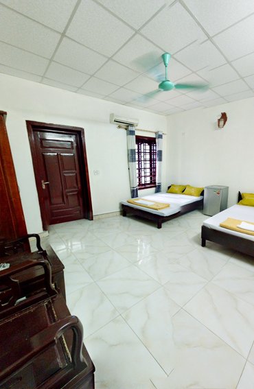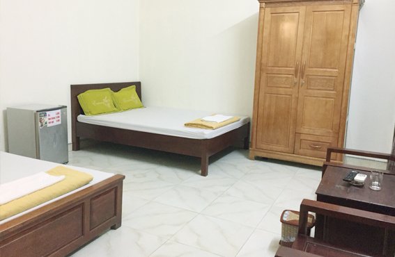 Không gian phòng nghỉ tại khách sạn rộng rãi thoáng mát, sạch sẽ được trang bị đầy đủ các tiện nghi chất lượng như: Tivi, tủ lạnh, nóng lạnh, quạt điện, tủ đựng đồ,... đảm bảo đáp ứng đầy đủ nhu cầu sinh hoạt của quý khách nghỉ tại khách sạn.