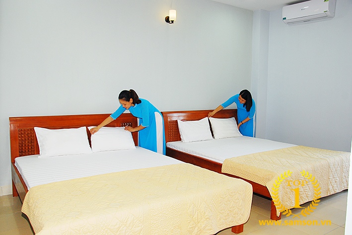 Khách sạn Thanh Niên Sầm Sơn có tổng số 45 phòng nghỉ khép kín. Các trang thiết bị trong phòng gồm có: tivi, điều hòa nhiệt độ, minibar, quạt điện, bình tắm nóng lạnh, bồn tắm, tủ đựng quần áo, bàn ghế uống nước,… đáp ứng được nhu cầu thiết yếu của khách lưu trú. Mỗi phòng được trang bị 02 giường đôi 1.5*2m rất rộng rãi, diện tích phòng 25m2. Khách du lịch khi lưu trú tại khách sạn sẽ cảm thấy hài lòng như chính ngôi nhà của mình bởi cách bài trí ấm áp, trang nhã tại khách sạn.