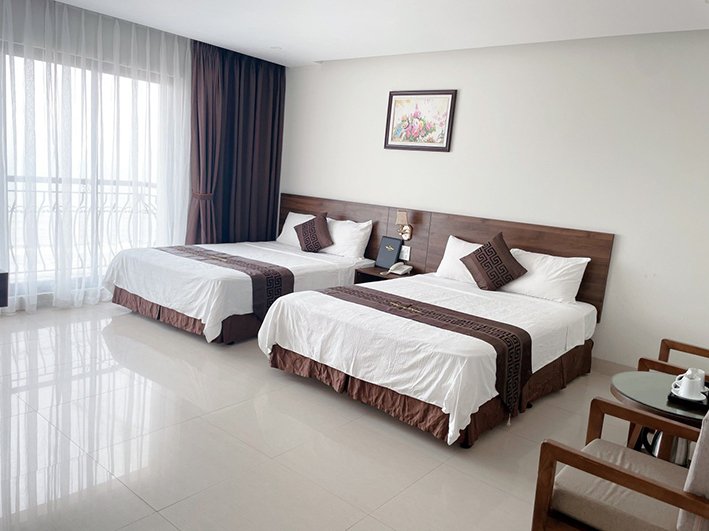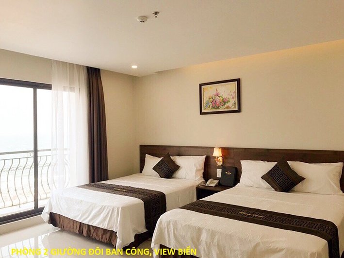 + Phòng 02 giường đôi ban công, view biển: 36 phòng được trang bị 2 giường đôi rộng rãi, hướng nhìn ra biển, tiện nghi - nội thất hiện đại và sang trọng.