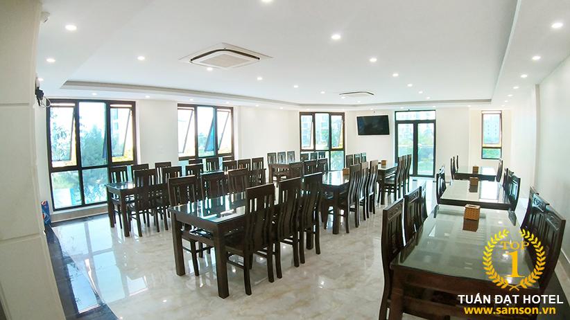 Bên cạnh đó khách sạn Tuấn Đạt Sầm Sơn còn có nhà hàng phục vụ ăn uống ngay tại tầng 1 và tầng 2 của khách sạn. Không gian rộng rãi, bàn ghế hiện đại, thực đơn đa dạng, hấp dẫn. Là những điểm nổi bật của nhà hàng.