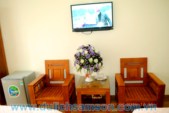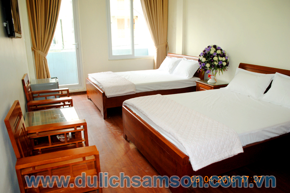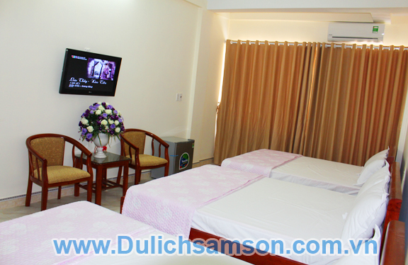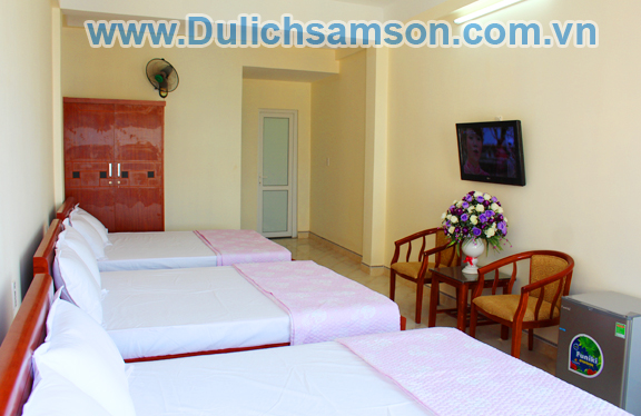 Một số hình ảnh về phòng 3 giường của khách sạn Victory Sầm Sơn với Tivi siêu mỏng, điều hoà 2 chiều,tủ lạnh, bàn trà,đèn ngủ, chăn ga gối đệm cao cấp