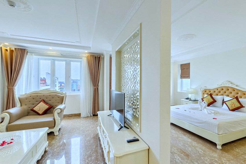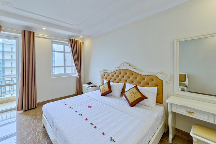 Khách sạn Việt Hưng Sầm Sơn có 58 phòng với 14 phòng đơn, 39 phòng đôi, 5 phòng VIP được thiết kế với gam màu trắng sữa ấm áp và sang trọng, mỗi phòng được trang bị máy điều hòa hai chiều, máy nước nóng, giường đệm cao cấp thoáng khí, mang lại giấc ngủ sâu và thoải mái cho người dùng.