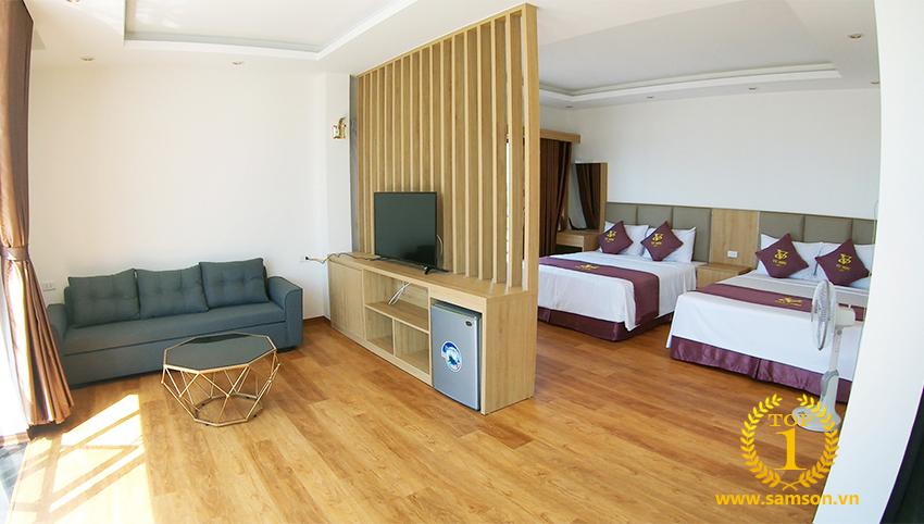 + Hạng phòng Vip: Được trang bị 02 giường đôi diện tích gần 40m2.