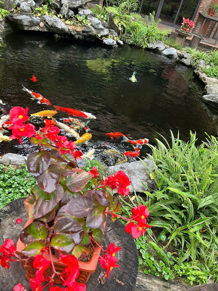 Tọa lạc tại vị trí vàng – số 28 Đại lộ Nam Sông Mã, trục đường chính đổ thẳng ra biển Sầm Sơn, nhà hàng như một ốc đảo xanh mướt giữa lòng phố biển náo nhiệt. Với diện tích hơn 1000m², không gian được kiến tạo theo phong cách mở, gần gũi thiên nhiên – cây xanh rợp mát, hồ cá Koi thong dong, từng góc nhỏ đều toát lên vẻ thư thái hiếm thấy.