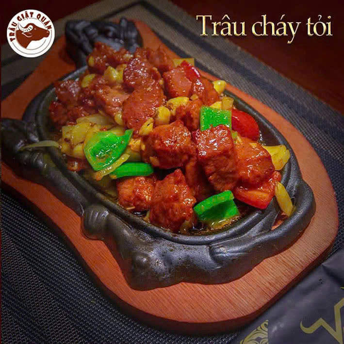Gọi tên món trứ danh tại đây, người ta không thể không nhắc đến Trâu giật – tinh hoa ẩm thực đã làm nên thương hiệu. Những miếng thịt trâu tươi mỗi ngày, được tuyển chọn kỹ càng từ nguồn cung uy tín, mềm, mọng, quyện vị, được tẩm ướp khéo léo theo công thức bí truyền. Dưới bàn tay của đầu bếp lành nghề, thịt trâu được chế biến thành những món ăn quyến rũ từ hình thức đến hương vị – giật nhưng không dai, đậm đà mà không ngấy, từng thớ thịt như tan chảy trong miệng, để lại dư âm vẹn tròn.