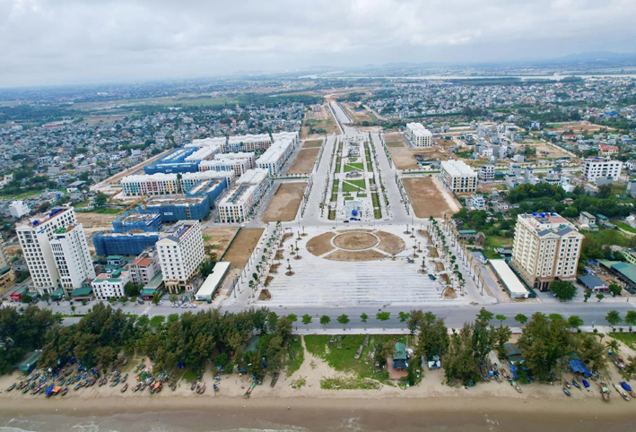 Quảng trường biển phố đi bộ nhìn từ trên cao hạng mục đang hoàn thiện