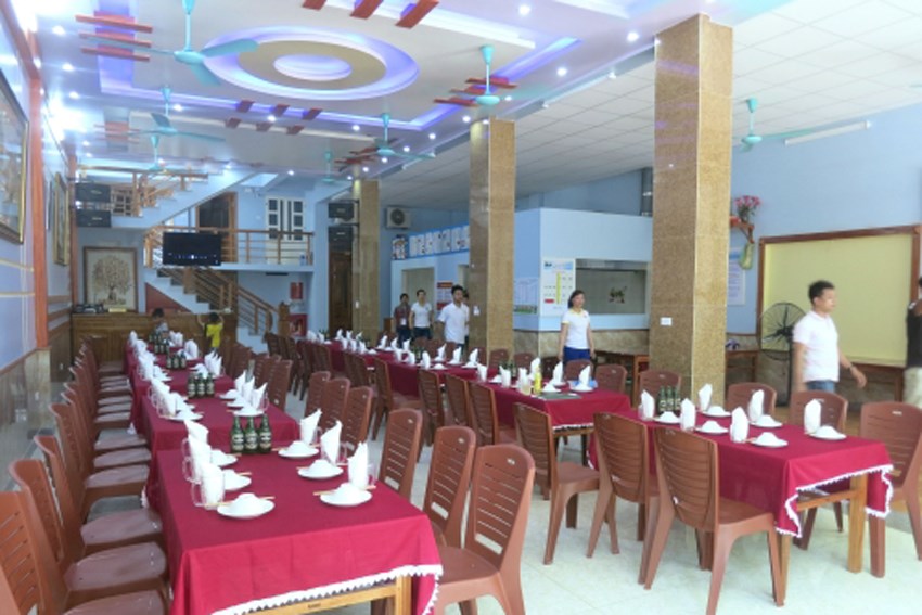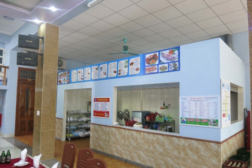 Phòng ăn lạnh chứa tới 120 khách, đầu bếp chuyên nghiệp, nhân viên phục vụ chu đáo, nhiệt tình thỏa mãn mọi nhu cầu của du khách