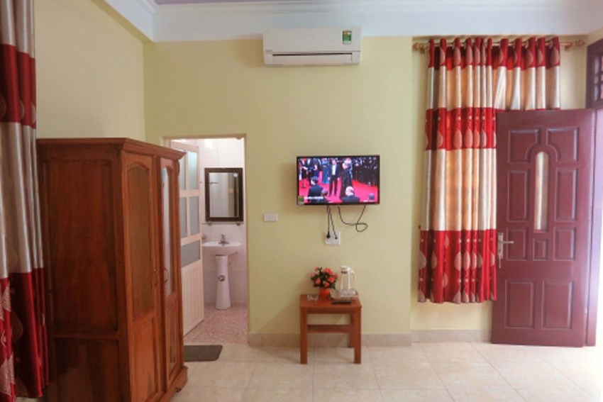 Phòng nghỉ với đầy đủ các thiết bị tiện nghi cần thiết cho du khách: tivi, tủ lạnh, điều hòa, tủ đựng quần áo, bàn ghế, truyền hình cáp, wifi,...