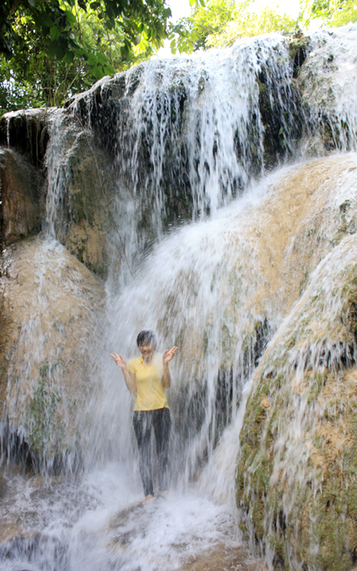 Khi ấy dòng thác hiền hoà, mộc mạc, lại nồng nàn như người con gái Mường Khô nơi đây. Có nơi thác đổ rào rào, nơi lại khẽ khàng, róc rách. Có thác nước mềm mại, nơi lại cao vút, trút nước cuồn cuộn, bọt tung trắng xóa. Nhấc đôi chân trần đi trên những tảng đá vôi, ngây ngất ngửi mùi hương nồng nàn của các loài hoa rừng không còn gì dễ chịu bằng.