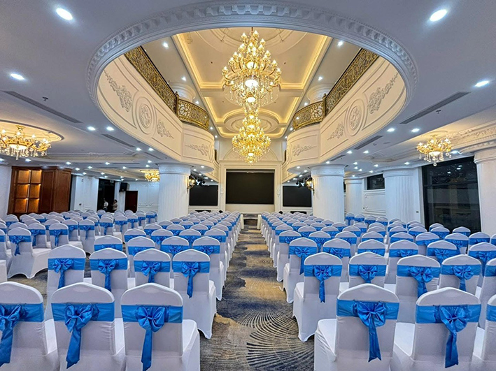 👉 Ngoài ra, khách sạn còn có một phòng hội thảo hiện đại, được trang bị sân khấu lý tưởng cùng các thiết bị công nghệ cao. Đây là lựa chọn hoàn hảo cho các sự kiện, hội nghị, hay các buổi tiệc lớn, mang lại không gian chuyên nghiệp và đầy đủ tiện nghi cho các tổ chức hay doanh nghiệp.
