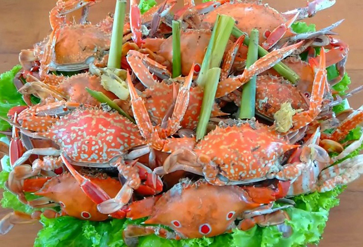 + Ghẹ hấp: Món ăn này chế biến khá đơn giản chỉ với 1 ít sả tươi đập dập, sau đó cho ghẹ đã sơ chế vào nồi đun trên lửa nóng. Sau 7 - 10 phút vớt ra, khi ăn quý thực khách sẽ cảm nhận rõ nét độ tươi ngon, ngọt từ thịt ghẹ.