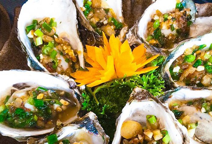 + Hàu nướng: Đây là món ăn bình dân nhưng vô cùng giàu chất dinh dưỡng, với các con hàu tươi sống được sơ chế sạch sẽ. Sau đó sẽ được nướng trên bếp than hoa, khi ăn thực khách sẽ cảm nhận được sự béo ngậy từ thịt hàu, hương thơm từ hành phi.