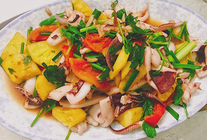 + Mực xào: Từ những con mực lá tươi xanh, dày thịt, được xào với các loại rau thơm. Đĩa thức ăn nóng hổi với hương vị hấp dẫn, chắc hẳn sẽ đón nhận được sự hài lòng từ quý thực khách.